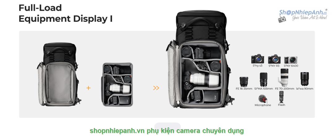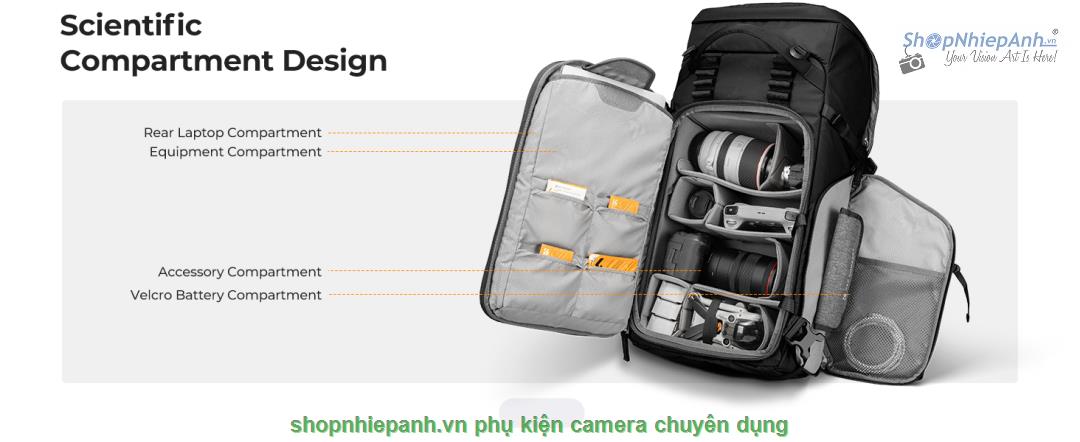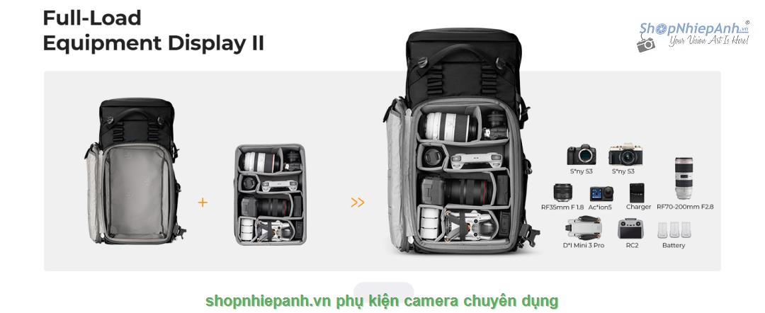 * 【Ba lô máy ảnh dung tích lớn 40L】Ba lô 40L này có thể chứa 2 máy ảnh và 6 ống kính, tương thích với máy ảnh DSLR/SLR của Sony/Canon/Nikon/DJI.