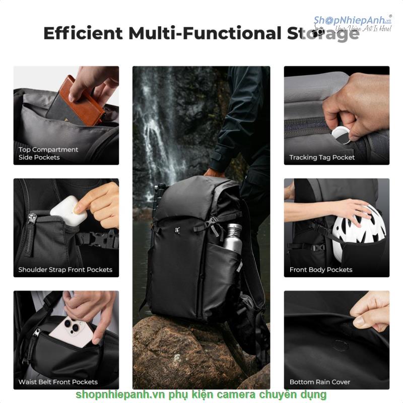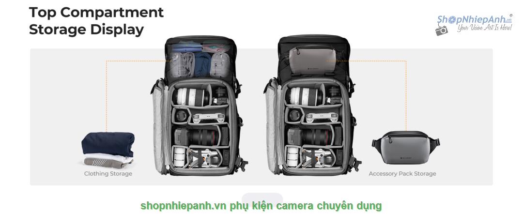 * 【Tùy chỉnh không gian lưu trữ】Ngăn trên có thể đựng quần áo, túi trong có khóa kéo có thể đựng điện thoại di động, pin, cáp và các phụ kiện khác, ngăn chính phía dưới có thể đựng máy ảnh, máy bay không người lái và các vật dụng khác, và 8 ngăn chia có thể được kết hợp tự do theo thiết bị máy ảnh để phù hợp với các nhu cầu khác nhau. Túi đeo hông, ngăn trước co giãn, túi bên hông, túi nhỏ và ngăn đựng máy tính xách tay để lưu trữ phụ kiện đa chức năng.