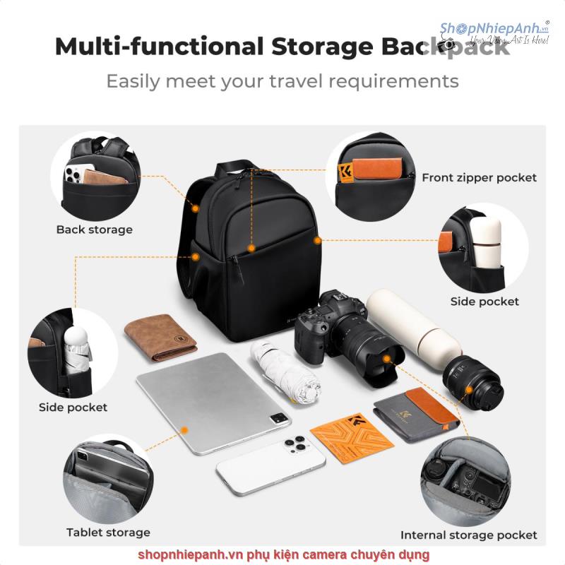 * Truy cập nhanh & Tổ chức thông minh: Không bỏ lỡ bất kỳ khoảnh khắc nào. Thiết kế mở phía trên cho phép lấy đồ nhanh chóng, trong khi ngăn khóa kéo phía trước độc lập giúp dễ dàng truy cập vào các vật dụng thường dùng như điện thoại thông minh, thẻ SD, nắp ống kính hoặc son môi, đảm bảo nhịp độ chụp ảnh của bạn không bị gián đoạn.