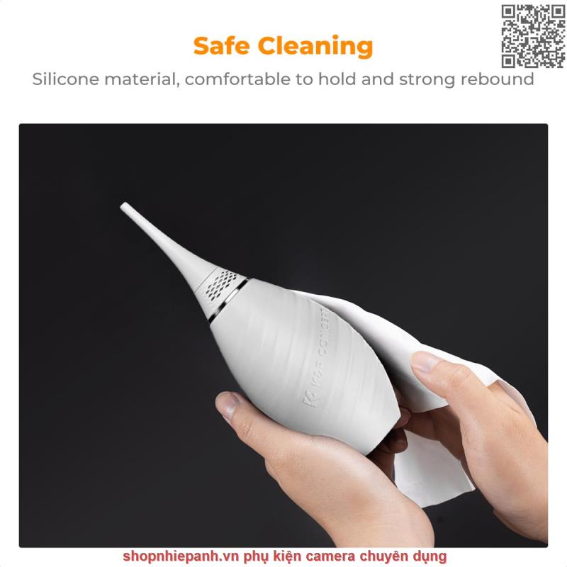 * Chất liệu silicon: Máy thổi khí máy ảnh được làm bằng chất liệu silicon, tạo cảm giác thoải mái khi chạm vào, có độ đàn hồi mạnh và vòi thổi mềm giúp bảo vệ thiết bị tốt hơn, tránh hư hỏng thứ cấp cho thiết bị.