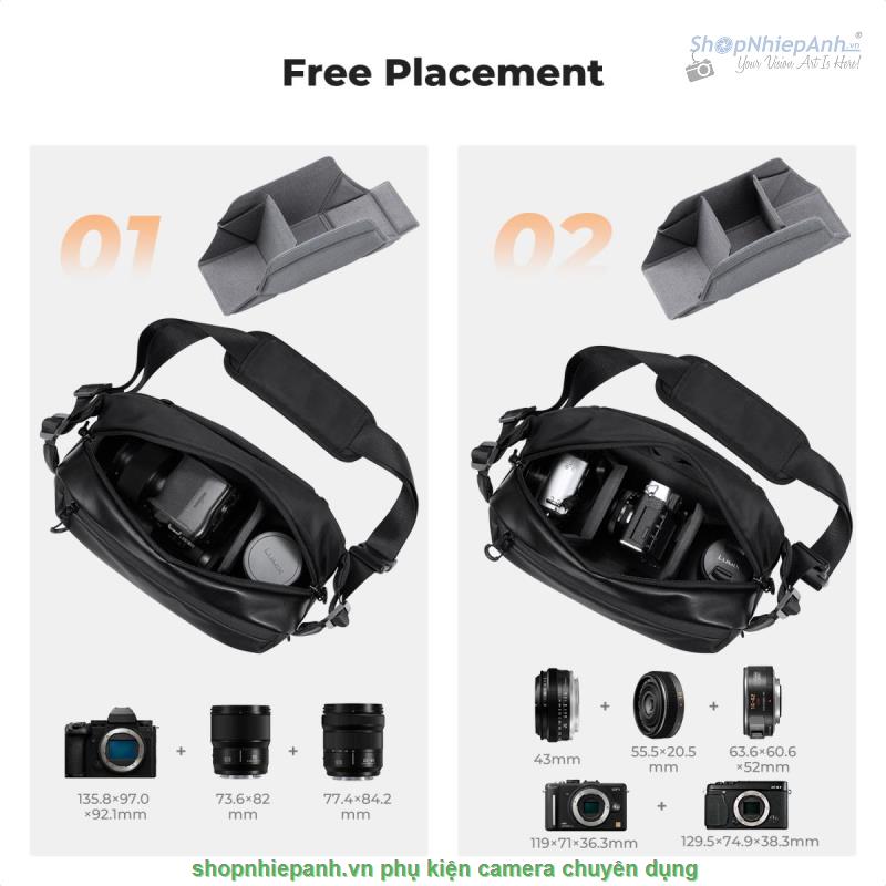 * [Nhiều cách để mang túi] Với kích thước 33*22*15cm . Túi đeo máy ảnh K&F Concept Alpha Sling có dung tích 10L và dễ dàng chứa một máy ảnh và hai ống kính. Với Với chức năng linh hoạt, chiếc túi đeo máy ảnh này có thể được sử dụng làm túi đeo vai, túi đeo chéo, túi thắt lưng, túi đeo ngực hoặc túi xách.