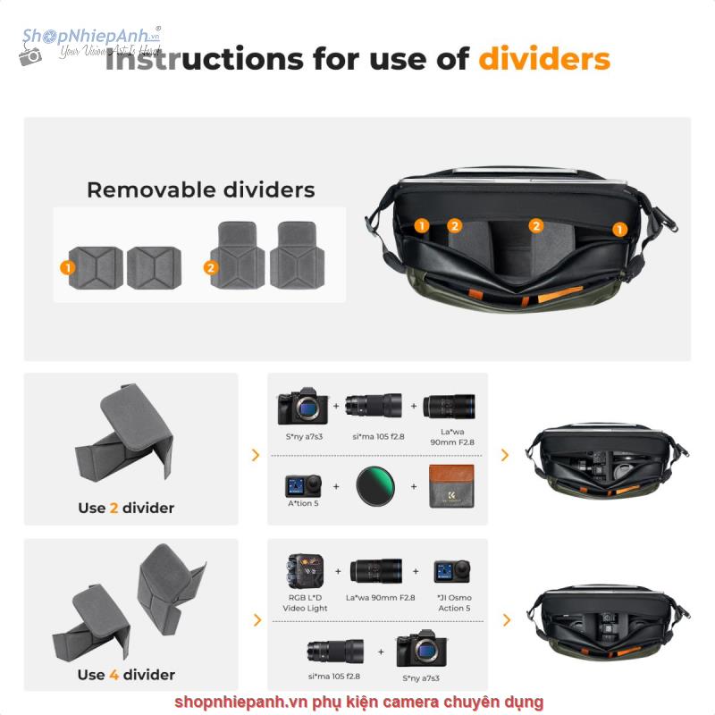 * Ngăn chia tùy chỉnh để lưu trữ linh hoạt: Dễ dàng tùy chỉnh ngăn chia bên trong để sắp xếp linh hoạt. Cho dù bạn cần điều chỉnh cho các ống kính máy ảnh khác nhau hay các thiết bị khác, chiếc túi này đều có thể thích ứng để sử dụng thuận tiện.