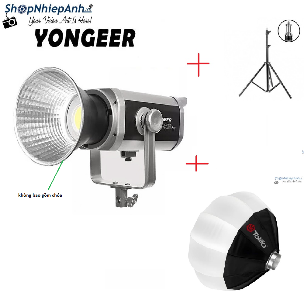 +2 đèn LED Yongeer 300W x2 = 600W siêu sáng, ánh sáng liên tục, nhiệt độ màu 2700K-6500K cho ảnh có màu sắc chính xác và siêu đẹp (2 đèn này không gồm choá)