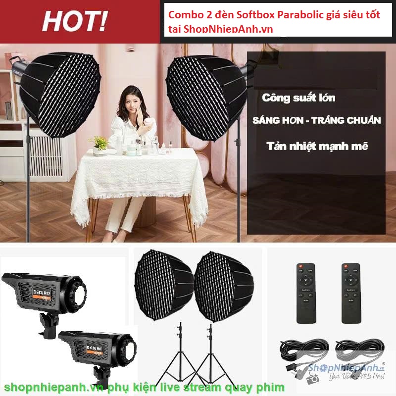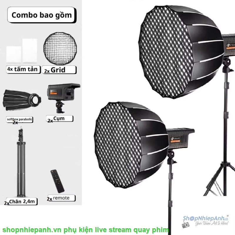 Combo 2 Kit LED Bediro BD800-S 200w softbox Parabolic 65cm remote kèm chân đèn lớn