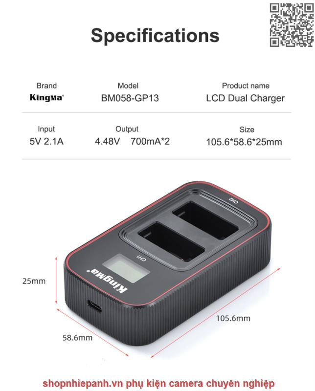 Combo 2 pin 1 sạc Kingma LCD BM058 for Gopro Hero 13