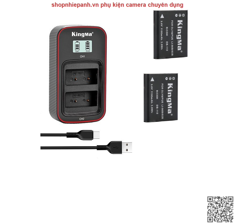 Combo 2 pin 1 sạc Kingma LCD BM058 ricoh DB-110 for Ricoh GR3 GR3x GRIII GRIIIx Olympus TG4 TG5 TG6 olympiyus LI90B/LI92B