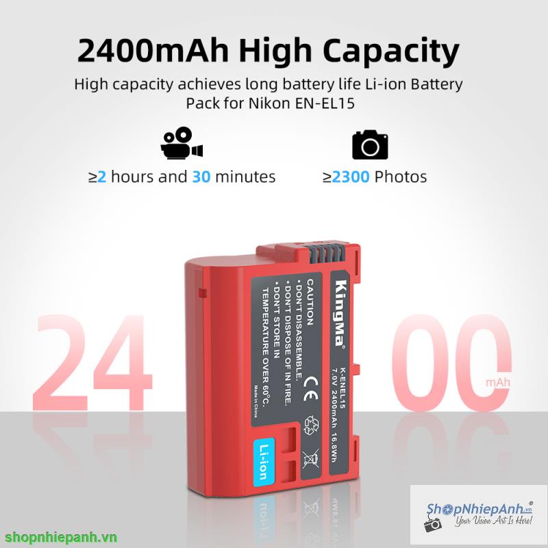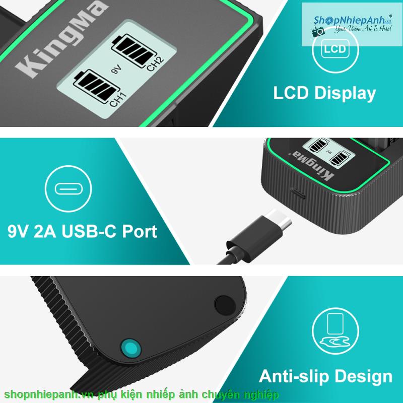 Combo 2 pin 1 sạc Kingma LCD BM058Q ver 5 for Nikon EN-EL15 Z5 Z6 Z6II Z7 Z7II D7100 D200 D800 D810 D7000 D750 D7500 D600 D610