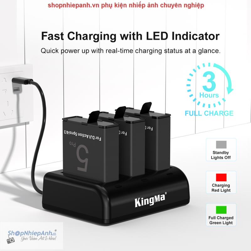Combo 2 pin 1 sạc Kingma LCD BM068 for Osmo action 5 Pro /4/3