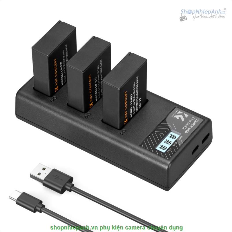 Combo 3 pin 1 sạc K&F concept for Canon LP-E17 1250mah Canon EOS R10, R100, R50, R7, R8. RP, Rebel T8i, T7i, T6i, T6s, SL2, SL3, EOS M3, M5, M6 Mark II, 77D, 200D, 750D, 760D, 800D, 8000D