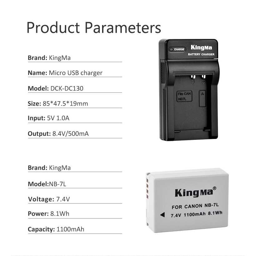 Combo pin và sạc KingMa NB-7L 7LH for Canon Powershot G10, G11, G12, SX30 IS, PC1560