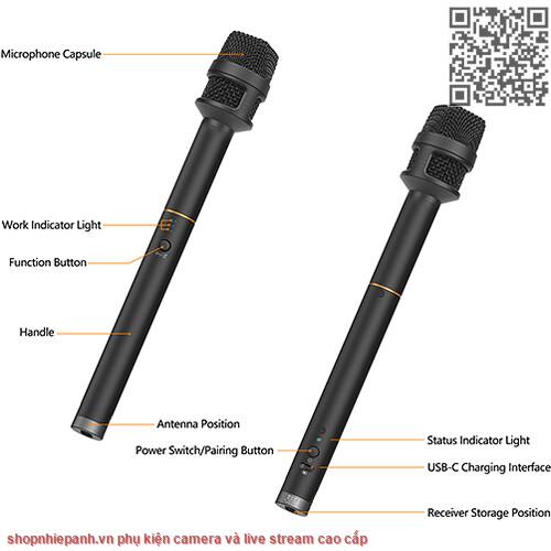 Micrô có thể truyền âm thanh đến điện thoại thông minh thông qua bộ thu theo cách không dây. Nó hỗ trợ khoảng cách truyền không dây 164', giải phóng người dùng khỏi những hạn chế về cáp. Không cần cài đặt trình điều khiển. Đầu ra âm thanh kỹ thuật số vẫn giữ được độ trung thực cao của tín hiệu âm thanh đã thu được trong quá trình truyền.