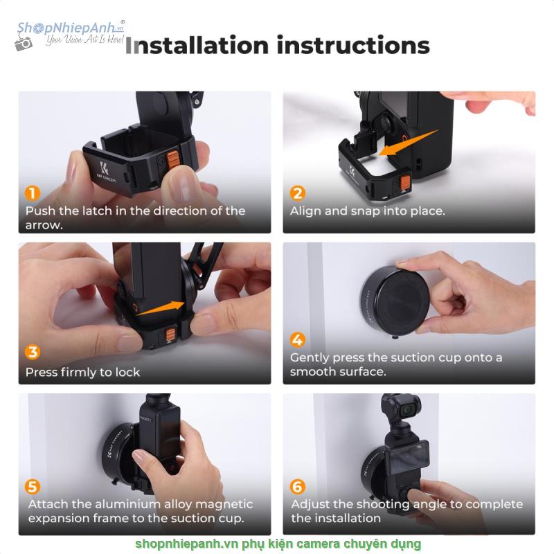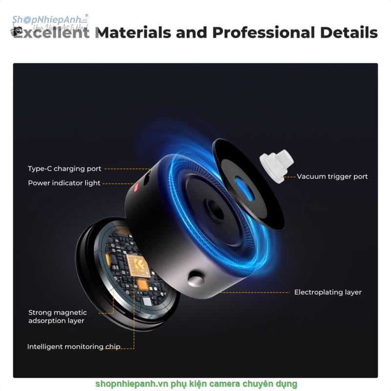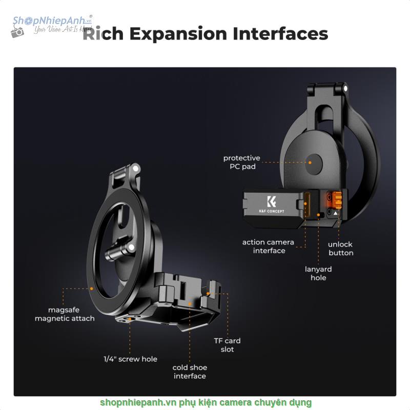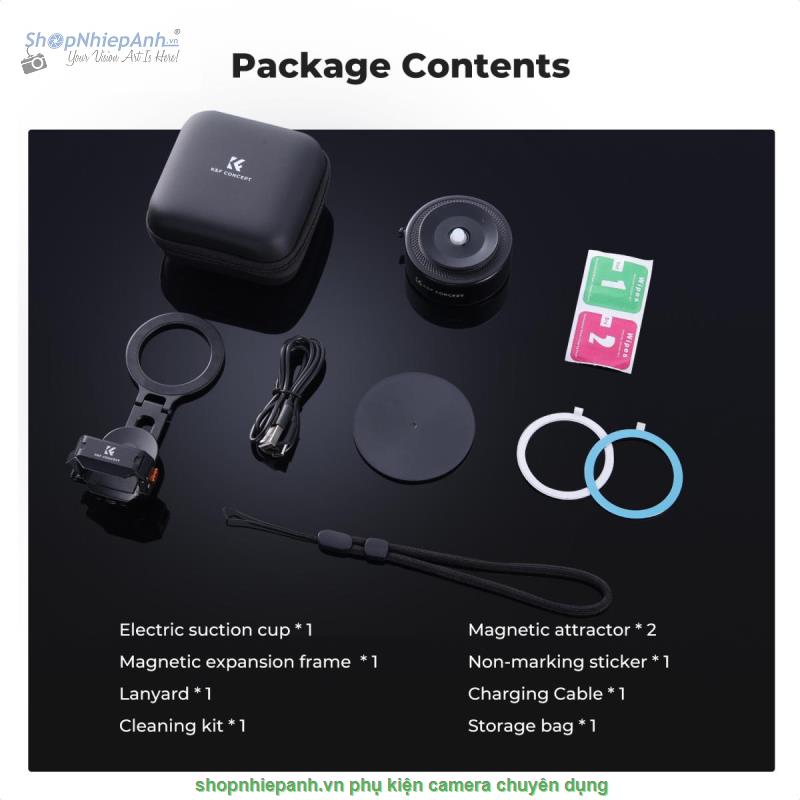* [Giao diện mở rộng phong phú] Khung mở rộng được trang bị đầy đủ các giao diện mở rộng khác nhau, bao gồm đế giữ lạnh, ren 1/4, lỗ dây treo, giao diện hành động, khe cắm thẻ nhớ TF, miếng đệm cao su và giao diện gắn từ tính điện thoại Magsafe. Bộ sản phẩm bao gồm: Đế hút điện*1, Đế hút nam châm*2, Miếng dán chống trầy*1, Túi đựng*1, Cáp sạc*1, Sách hướng dẫn*1