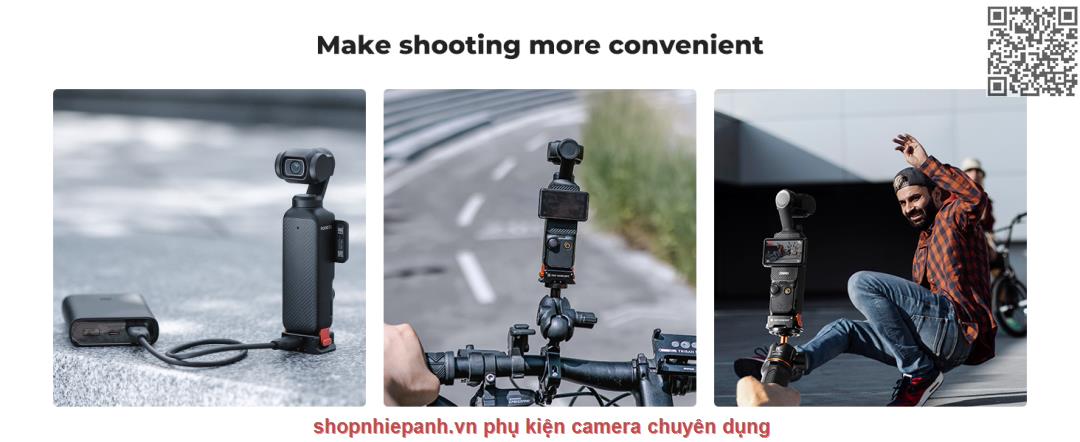 * 【Lỗ vít 1/4" & Đế loại Arca】Tương thích với hầu hết các chân máy, đầu bi, kẹp siêu, gậy tự sướng và các phụ kiện khác, vì vậy bạn có thể dễ dàng kết nối Pocket3 với nhiều thiết bị khác nhau.