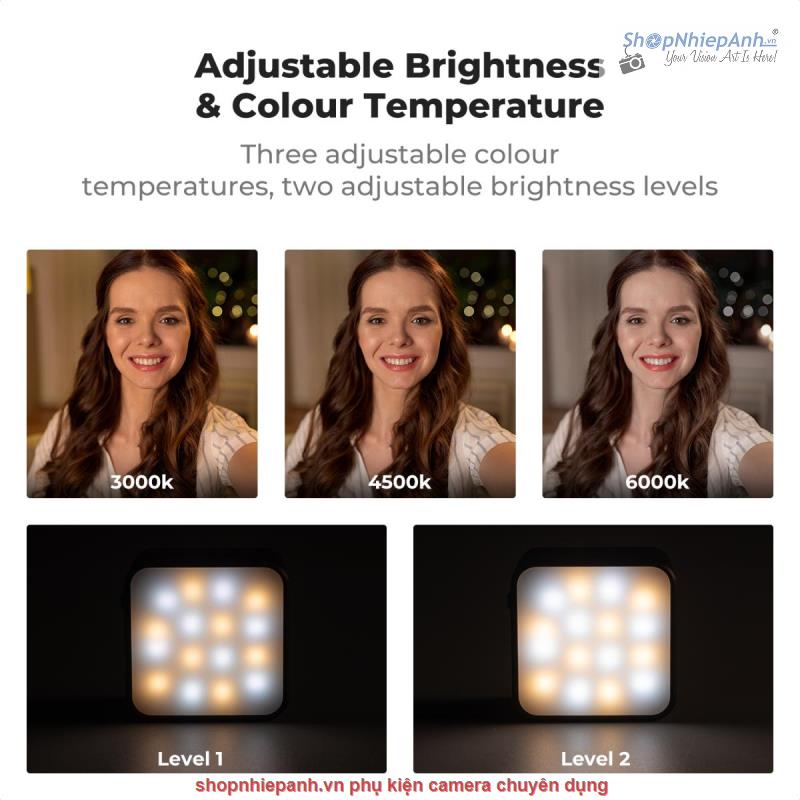 * 【Nhiệt độ màu và độ sáng có thể điều chỉnh】Đèn LED sử dụng bóng đèn LED cao cấp với CRI ≥95, cung cấp hiệu ứng ánh sáng mềm mại và đồng đều, làm sáng và tăng cường tông màu da hiệu quả, giúp bạn trông đẹp nhất trước ống kính. Hỗ trợ ba nhiệt độ màu có thể điều chỉnh: 3000K, 4500K và 6000K, cung cấp các chế độ ánh sáng ấm, ánh sáng trắng ấm và ánh sáng trắng lạnh để đáp ứng các yêu cầu về tông màu khác nhau. Ngoài ra, điều chỉnh độ sáng hai cấp độ thích ứng với các điều kiện ánh sáng khác nhau, làm nổi bật chính xác các đường nét và chi tiết trên khuôn mặt.