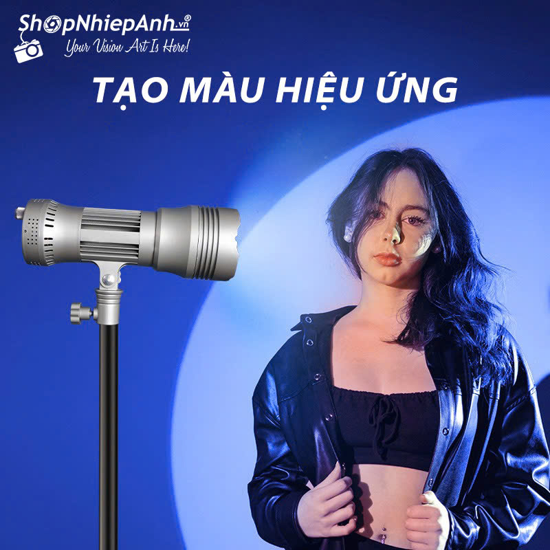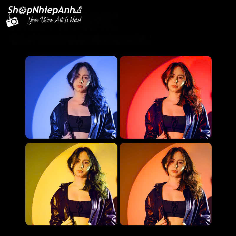 Combo gồm đèn, 4 filter màu, remote, cục điện nguồn