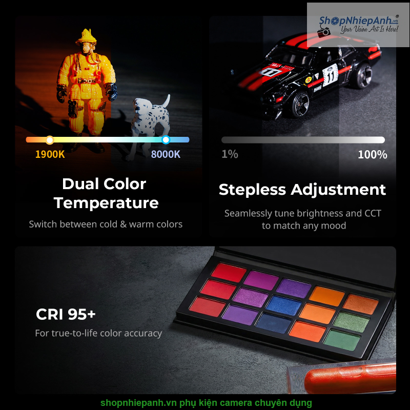 Chất lượng ánh sáng điện ảnh, dải nhiệt màu cực rộng 1900K–8000K