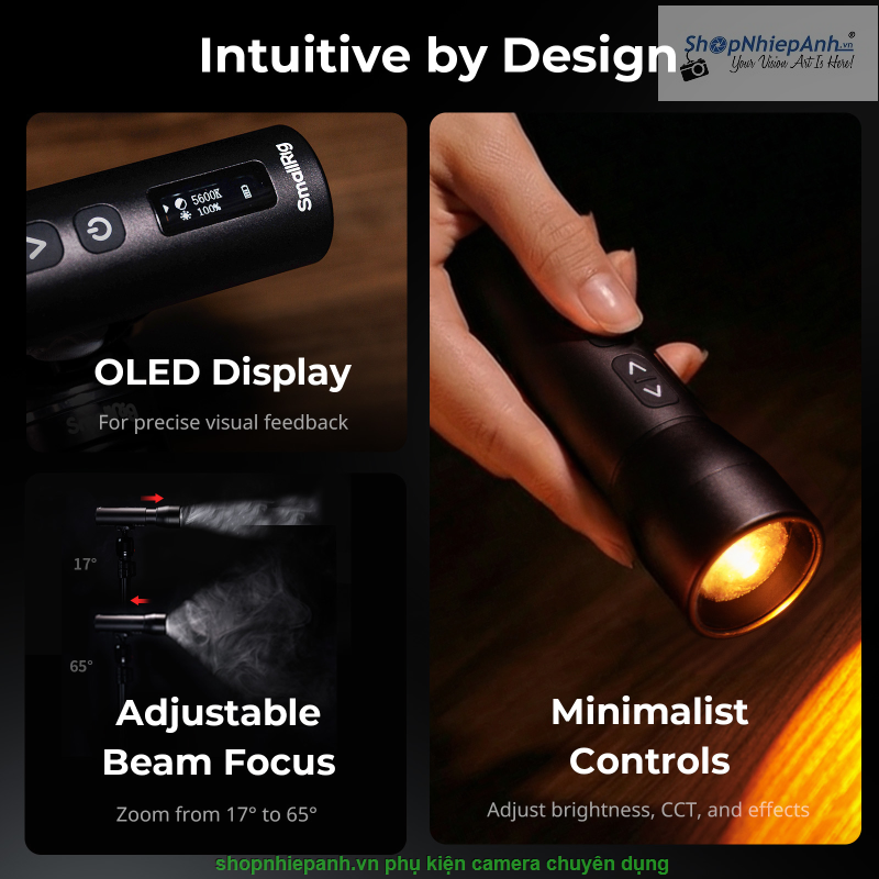 Màn hình OLED hiển thị CCT, độ sáng và pin rõ ràng