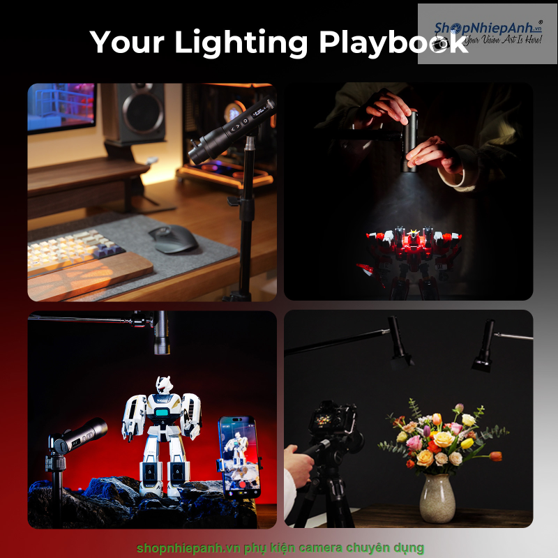 Bộ kit tạo hình ánh sáng đa năng: diffuser, barn door, spotlight, gel RGB