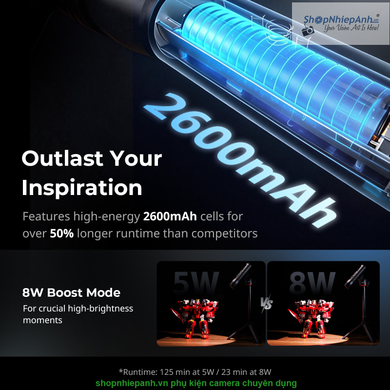 Thời gian sử dụng dài, chức năng tăng công suất tức thì và zoom góc chiếu linh hoạt