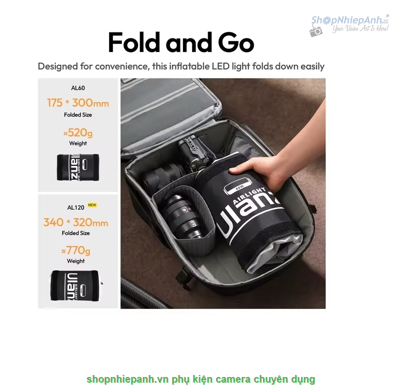 Ulanzi AL120 là đèn LED có cấu trúc ống khí bơm phồng, cung cấp ánh sáng hai màu (bi-color) từ 2700K đến 6500K, phù hợp cho nhiếp ảnh và quay phim chuyên nghiệp trong cả điều kiện ngoài trời và studio. Sản phẩm nổi bật với thiết kế tiện lợi, dễ mang theo và lắp đặt nhanh chóng.
