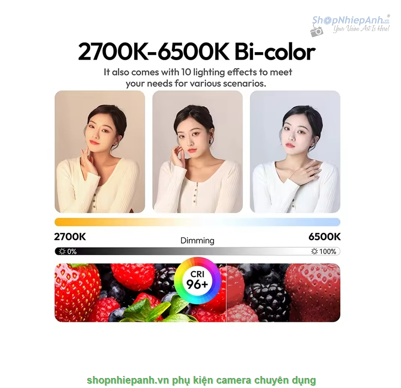 - Dải nhiệt độ màu rộng: 2700K – 6500K, ánh sáng hai màu.