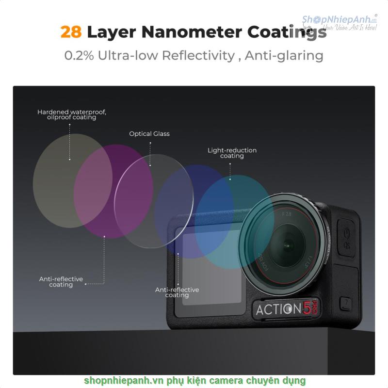 * Kính quang học AGC cao cấp với lớp phủ Nano: Được làm bằng kính quang học AGC cao cấp độ nét cao, hai mặt với 28 lớp phủ nano đa lớp, đảm bảo độ phản xạ cực thấp mà không ảnh hưởng đến độ rõ nét và sắc nét của hình ảnh, có khả năng chống nước và chống trầy xước, giúp bảo vệ ống kính quý giá của bạn.