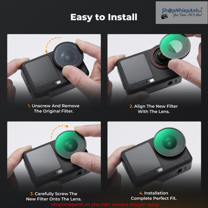 * 【Lắp đặt và vừa khít an toàn bằng vít】 Chúng được lắp đặt chỉ trong vài giây với cơ chế vặn đơn giản, an toàn, giống hệt với nắp ống kính gốc. Thay đổi bộ lọc nhanh chóng và dễ dàng mà không cần học cách sử dụng và không có nguy cơ bị rơi ra.