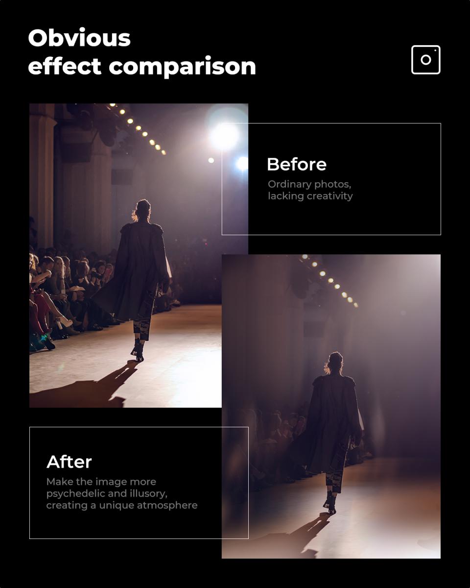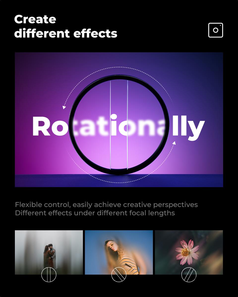 * 【Hiệu ứng tuyệt vời】Bộ lọc tách diopter trung tâm có thể làm mờ tiền cảnh và tạo hiệu ứng khúc xạ mờ. Hiệu ứng mờ được thêm vào các cạnh để làm nổi bật chủ thể, tạo ra một bức ảnh có cảm giác nhiều lớp và chiều sâu.