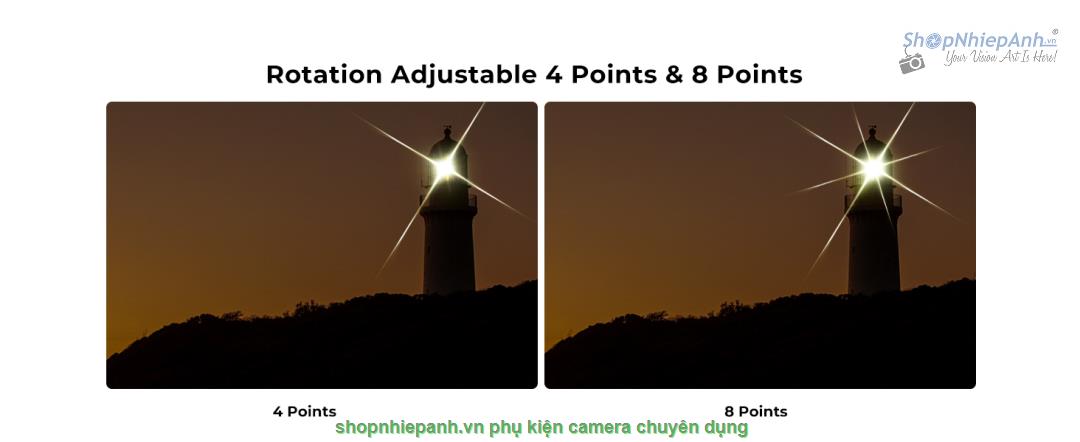 * 【Chuyển đổi tự do giữa sao 4 điểm và sao 8 điểm】Để mang đến sự tiện lợi tối đa khi sử dụng bộ lọc sao này, K&F Concept đưa các hiệu ứng sao thường được sử dụng nhất vào một bộ lọc. Bạn có thể xoay bộ lọc để chuyển đổi mượt mà giữa sao 4 điểm và sao 8 điểm. Dựa trên điều kiện chụp và sở thích sáng tạo, cho phép tạo ra các bố cục chính xác và nghệ thuật với bộ lọc này được gắn trên ống kính máy ảnh của bạn.