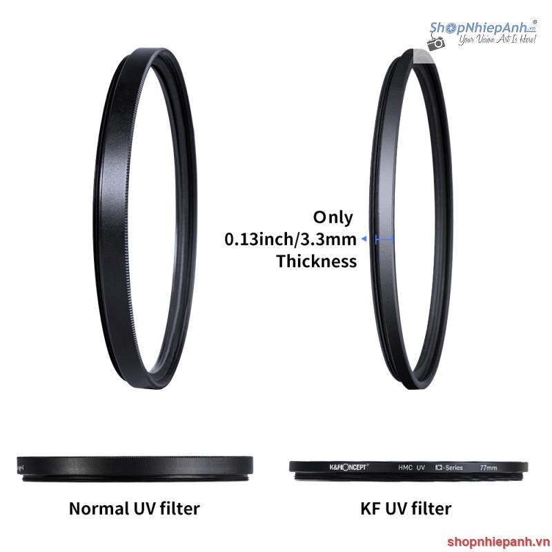 +Kính lọc filter UV công nghệ nano HMC có lớp coating tiêu chuẩn chống tia UV (cực tím) bảo vệ tốt lens và cảm biến bên trong