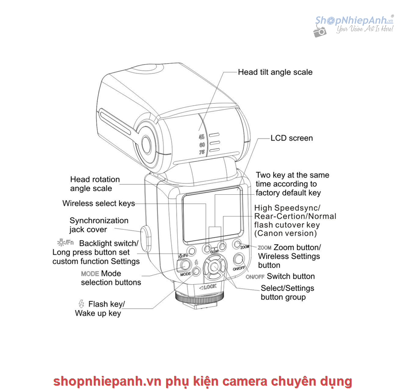 5. Hỗ trợ chụp liên tục tốc độ cao: ở độ sáng 1/16 và sáng mạnh, có thể hỗ trợ chụp liên tục tốc độ cao 12 khung hình/giây. 6. Chức năng đèn flash không dây: phù hợp với hệ thống đèn flash không dây của Canon và Nikon, thực hiện TTL từ máy, chế độ thủ công và chế độ tần số