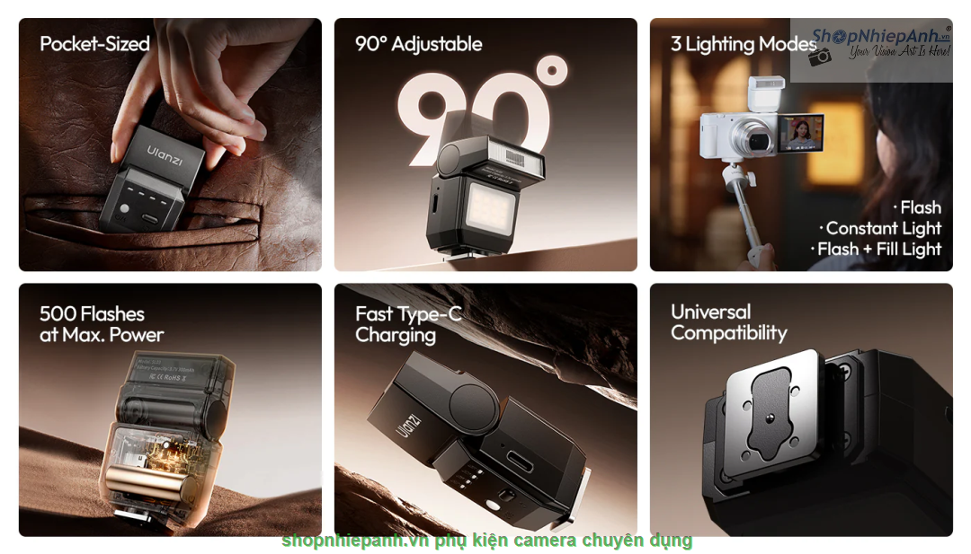 Flash Ulanzi SL03 Đèn Flash Mini Spark Lite tích hợp pin 300mAh điều chỉnh góc chính hãng