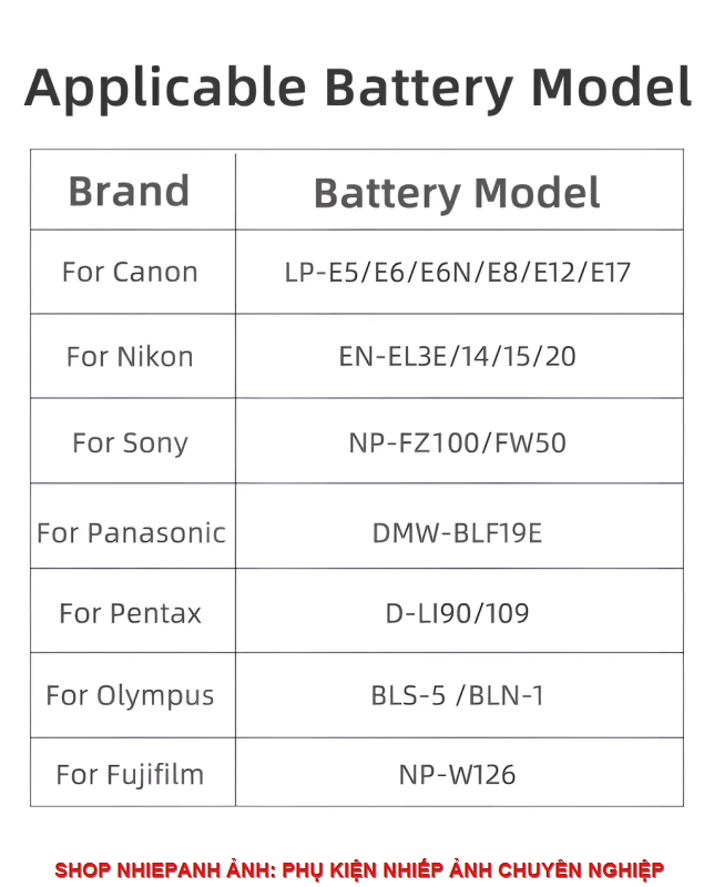 -đựng pin vừa các dòng FZ100, W235, E6, BP511A,el5 . đối với các dòng pin nhỏ như FW50, EL17, EL14, E8, E10...sẽ có khoảng dư khi gắn vô hộp này