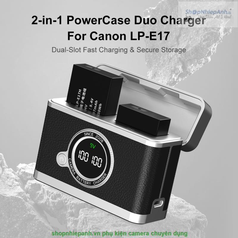Hộp Sạc đôi Kingma sạc nhanh for Canon LP-E17 EOS R50 R8 R100 200D 250D 800D M6II kiểu dáng retro camera (Brown)