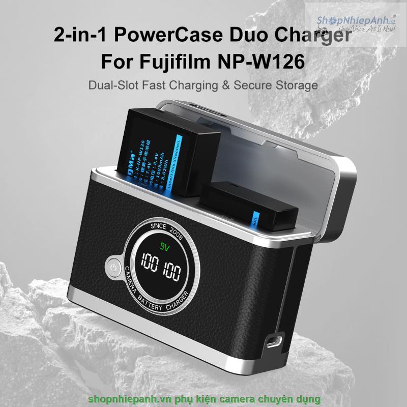 Hộp Sạc đôi Kingma sạc nhanh for Fujifilm NP-W126 W126S Fujifilm X-S10 X-T5 X-T20 X-T2 X-A7 X100V X-T3 X-H1 kiểu dáng retro camera (brown)
