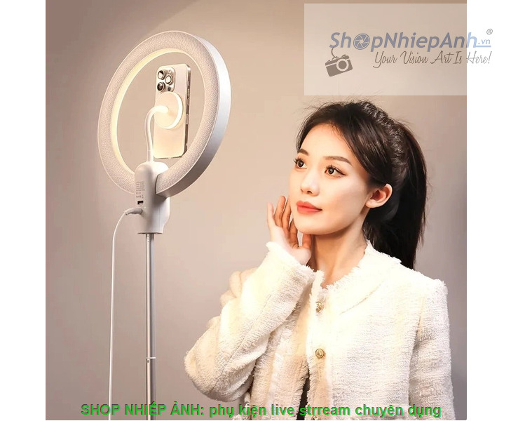 Ulanzi 10-inch Ring Light with Stand and Magnetic Phone Mount có kích thước 10" và chiếu sáng rất đều và gần như không có bóng đổ lên đối tượng của bạn. Giá đỡ điện thoại từ tính cho phép chuyển đổi liền mạch giữa chế độ ngang và dọc, lý tưởng cho điện thoại thông minh có MagSafe hoặc có ốp lưng điện thoại MagSafe. Đèn vòng có các cài đặt 3000, 4000 và 6000K để hòa hợp với hầu hết các tình huống ánh sáng xung quanh. Có thể điều chỉnh màu sắc và độ mờ bằng điều khiển từ xa đi kèm (phạm vi 20m). Tận hưởng chức năng nghiêng ±90° để tùy chỉnh góc chiếu sáng, hoàn hảo cho các cảnh quay ngang tầm mắt hoặc ảnh chụp phẳng. Thêm vào đó, hãy luôn cấp nguồn bằng khả năng sạc USB, đảm bảo các buổi phát trực tiếp không bị gián đoạn.