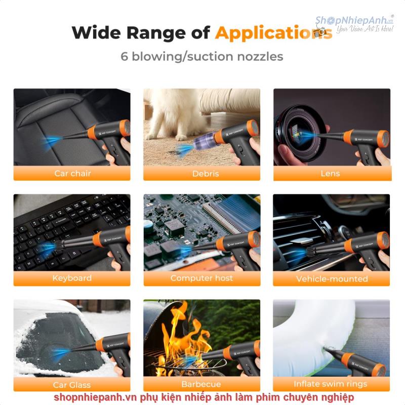 * 【Nhiều tình huống sử dụng】Máy nén khí đi kèm với 6 bộ vòi phun/chổi và 5 miếng vải hút bụi, có thể đáp ứng mọi nhu cầu vệ sinh, máy tính xách tay, nội thất ô tô, ghế ngồi và cũng có thể sử dụng cho các buổi dã ngoại ngoài trời để thổi lửa, sấy khô tóc của người và vật nuôi, phao bơi bơm hơi và loại bỏ tuyết và lá trên bề mặt xe, v.v.