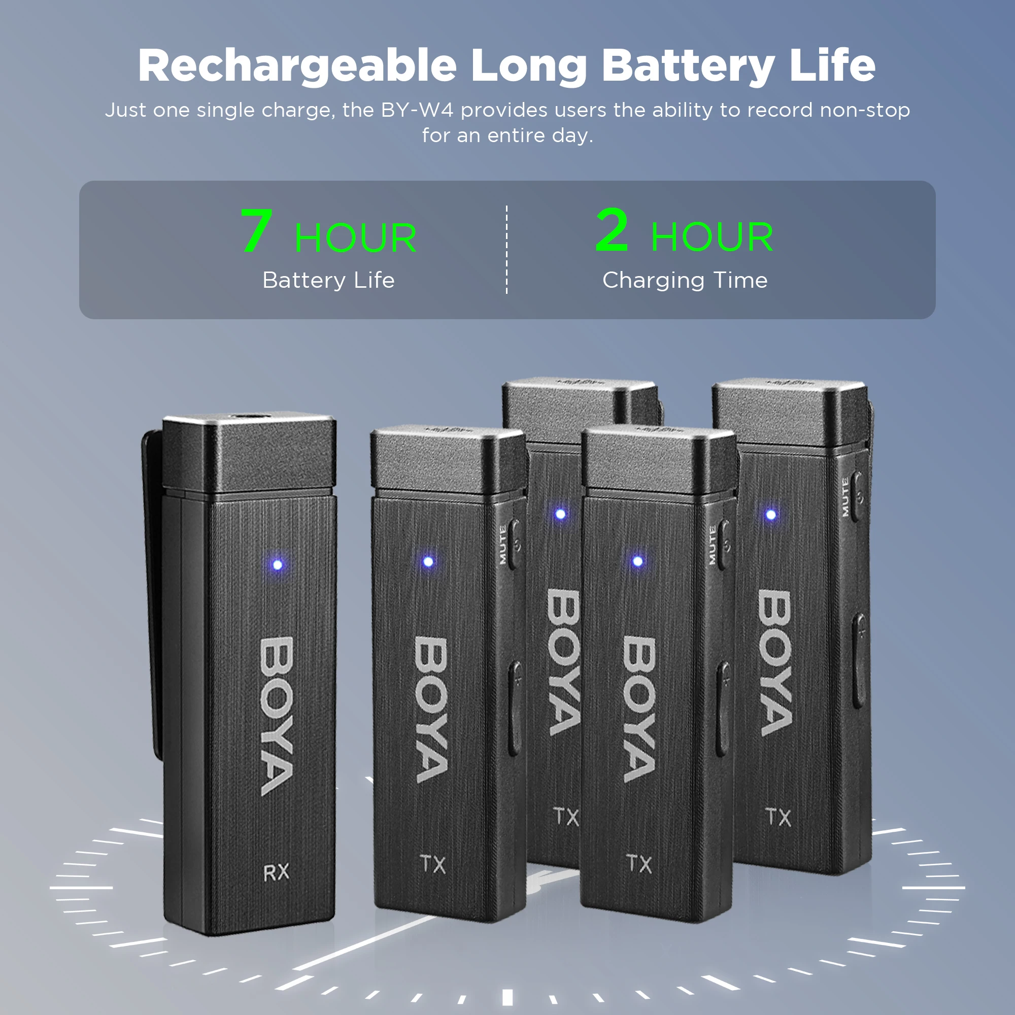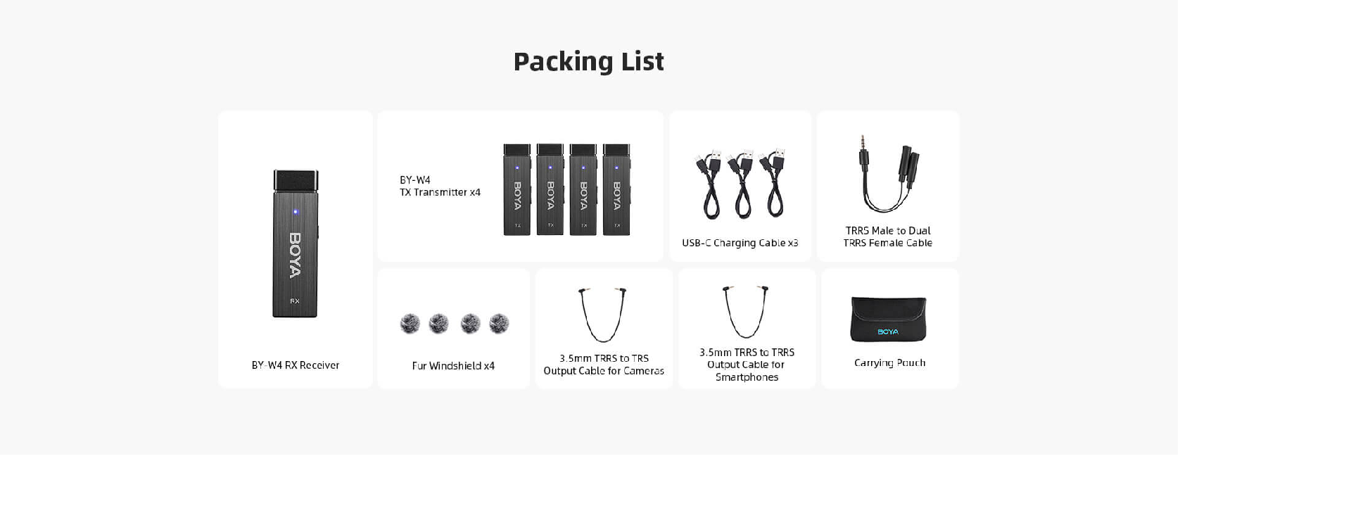 BY-W4 là hệ thống micrô không dây bốn kênh cung cấp chất lượng phát sóng và hiệu suất đáng tin cậy với âm thanh rõ ràng, sắc nét. Với bốn kênh 2.4G, nó hoàn hảo cho các cuộc phỏng vấn nhiều người, biểu diễn trực tiếp, phát trực tiếp, hội nghị, thảo luận nhóm hoặc các sự kiện khác.