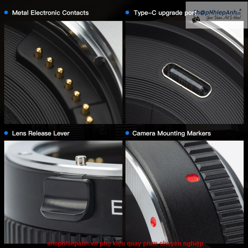 thiết kế gắn được lens Canon EF , EF-s gắn vào các dòng máy fujifilm ngàm FX như XA, XE, XT series..., có hỗ trợ AF, hỗ trợ thông số EXIF ảnh chụp, tương thích tốt đa dạng lens