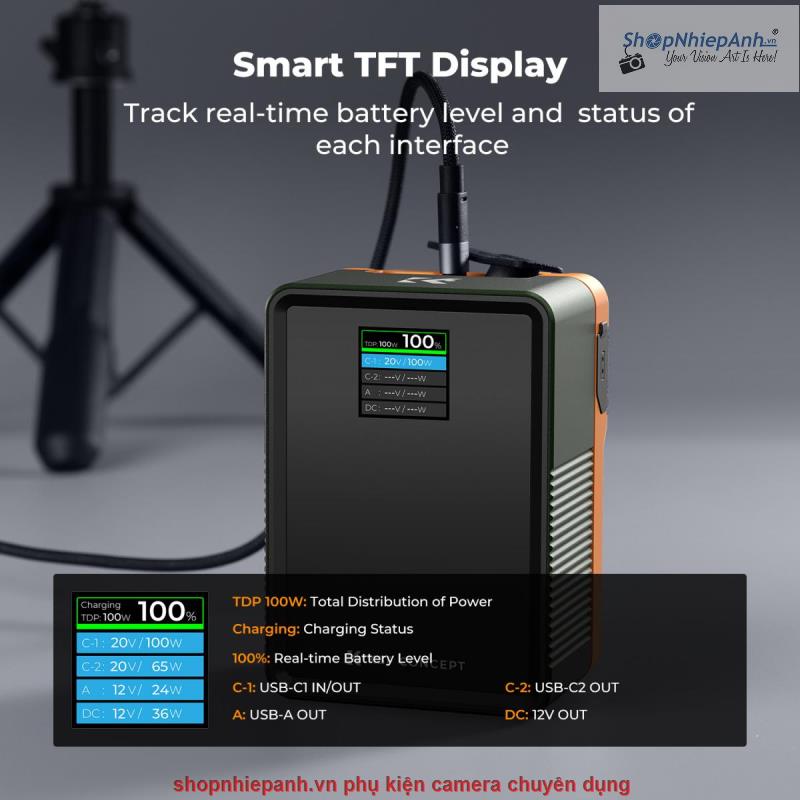 * 【Màn hình màu TFT thời gian thực】Theo dõi công suất đầu ra cho từng cổng và trạng thái chung của pin thông qua màn hình màu TFT rõ nét, đảm bảo quản lý nguồn hiệu quả và sử dụng tối ưu trong các buổi chụp kéo dài.