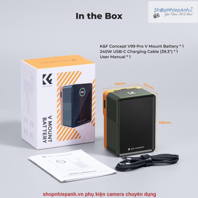 Pin K&F concept mini V-Mount 99Wh 6700mAh 14.8V 100W 6 cổng kết nối Dtap DC USB type C LCD thông minh(KF28.0024V2)