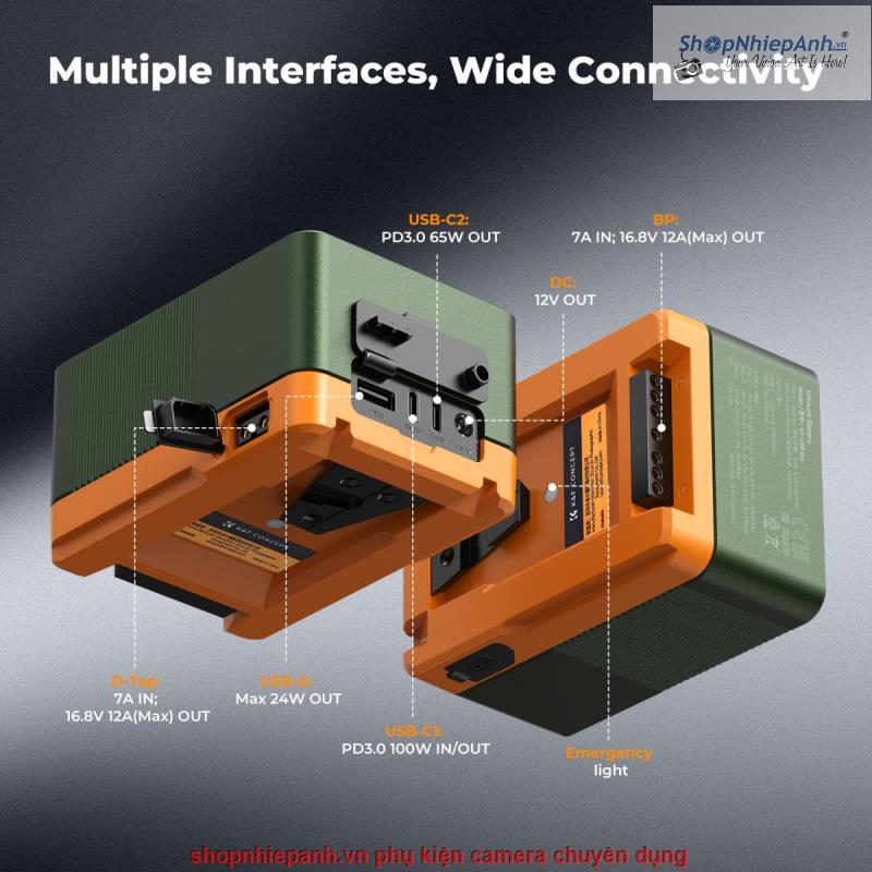 * 【Tùy chọn kết nối mở rộng】Với hai cổng USB-C, một cổng USB-A, một cổng DC (12V, 5,5x2,5mm), BP và D-TAP, loại pin này đảm bảo bạn có thể cấp nguồn cho nhiều thiết bị cùng lúc, biến nó thành một trung tâm cấp nguồn đa năng cho mọi thiết bị của bạn.