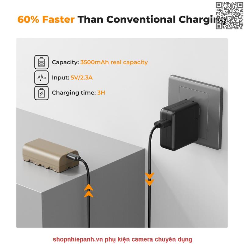 【Sạc nhanh USB-C】Pin NP-F550 này có cổng sạc USB Type-C dòng điện cao (5V/2.3A), có thể sạc đầy pin trong 3 giờ; thời gian sạc giảm 60% so với sạc thông thường