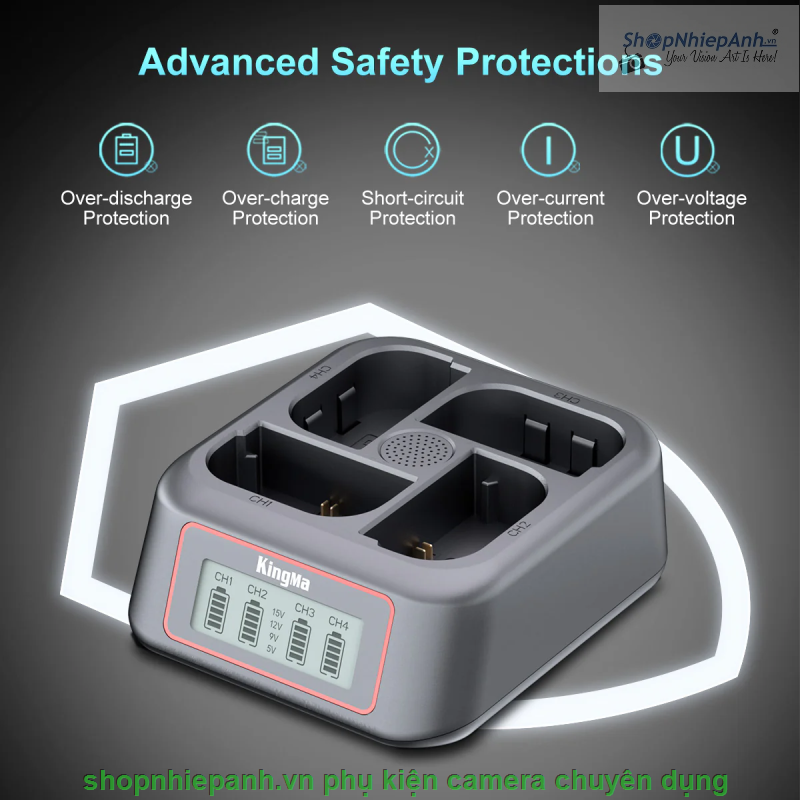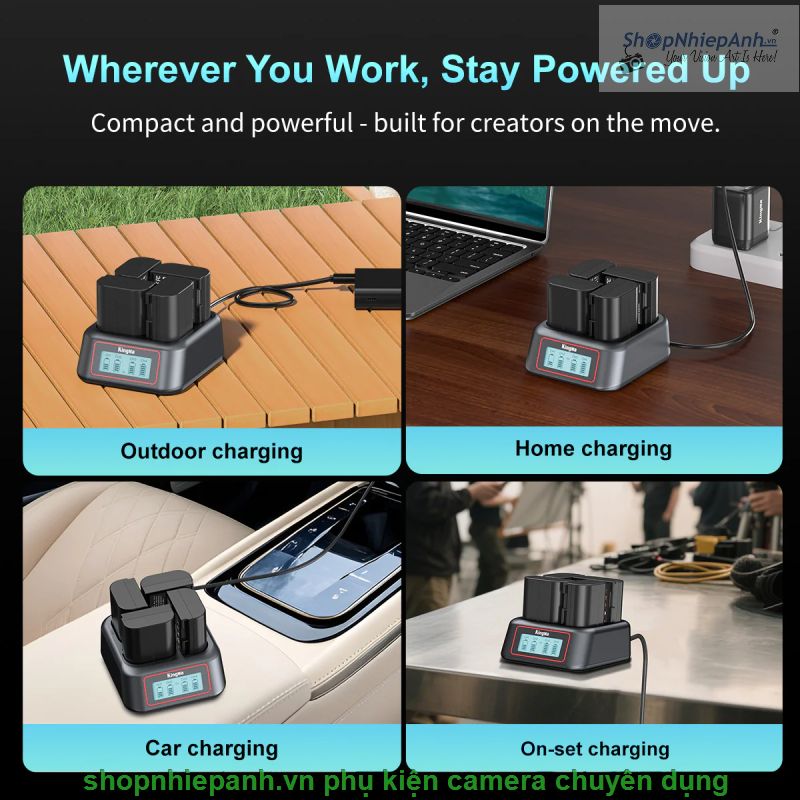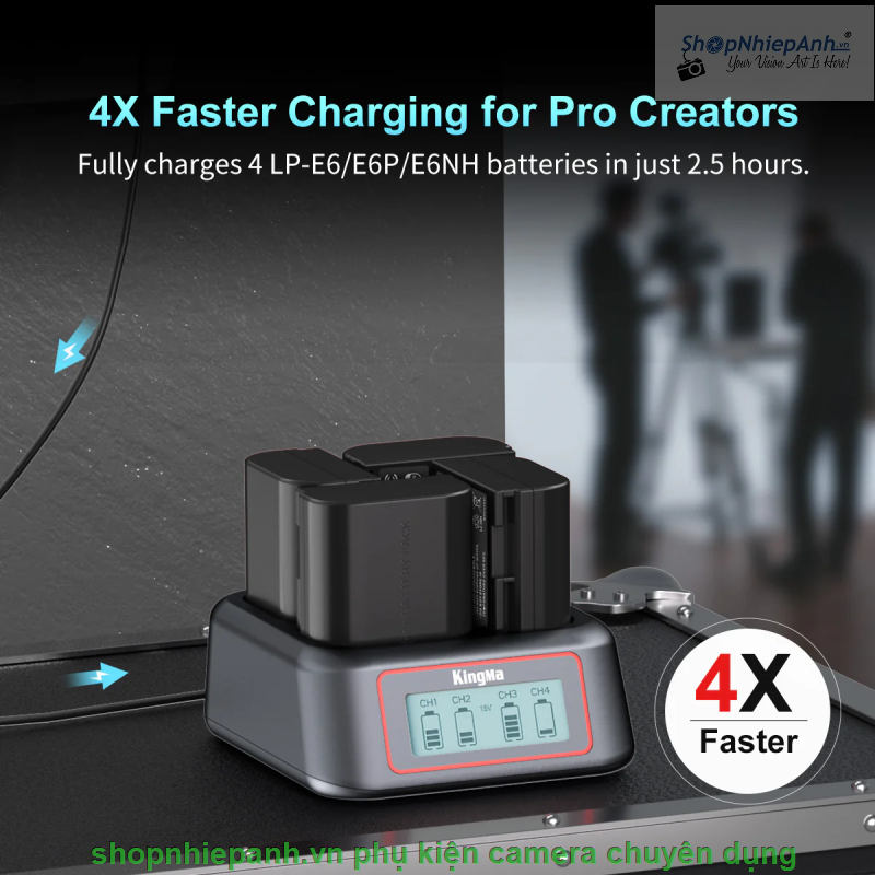 Sạc pin siêu nhanh 4 khe KingMa BM069-NP-FZ100, giải pháp sạc tối ưu cho pin máy ảnh Sony NP-FZ100.