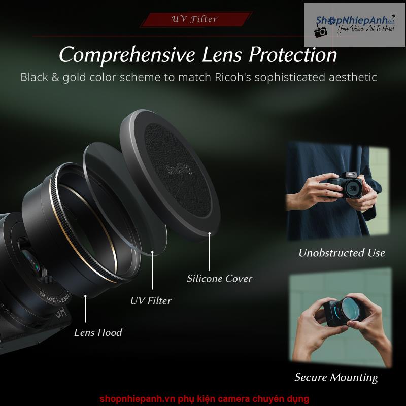 • Bảo vệ kép, một thiết bị duy nhất: Loa che nắng tích hợp và ngàm gắn bộ lọc UV trực tiếp qua khớp nối kiểu lê lê, cùng với sản phẩm bảo vệ chuyên dụng chống trầy xước toàn diện.