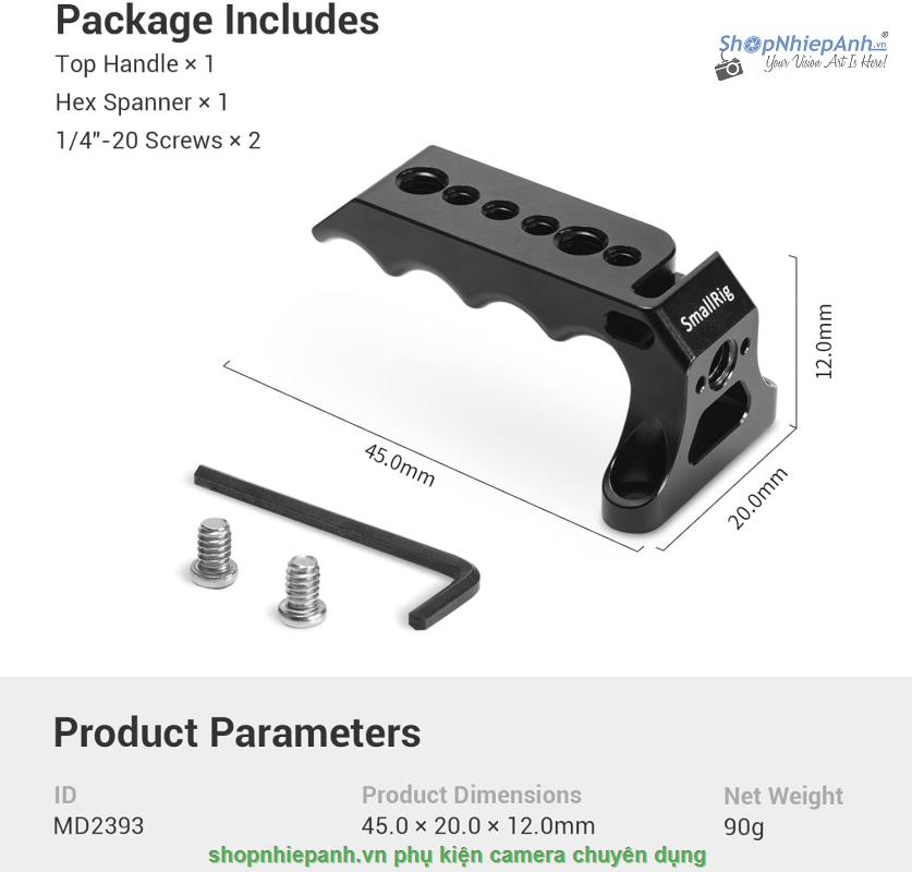 Kích thước: Kích thước của tay cầm trên cùng hoàn toàn phù hợp với các thiết bị nhỏ và vừa, giúp giữ cho kết cấu gọn gàng khi quay run & gun. Tay cầm cũng có thể được sử dụng với steadycam và gimbal trong quá trình vận hành.