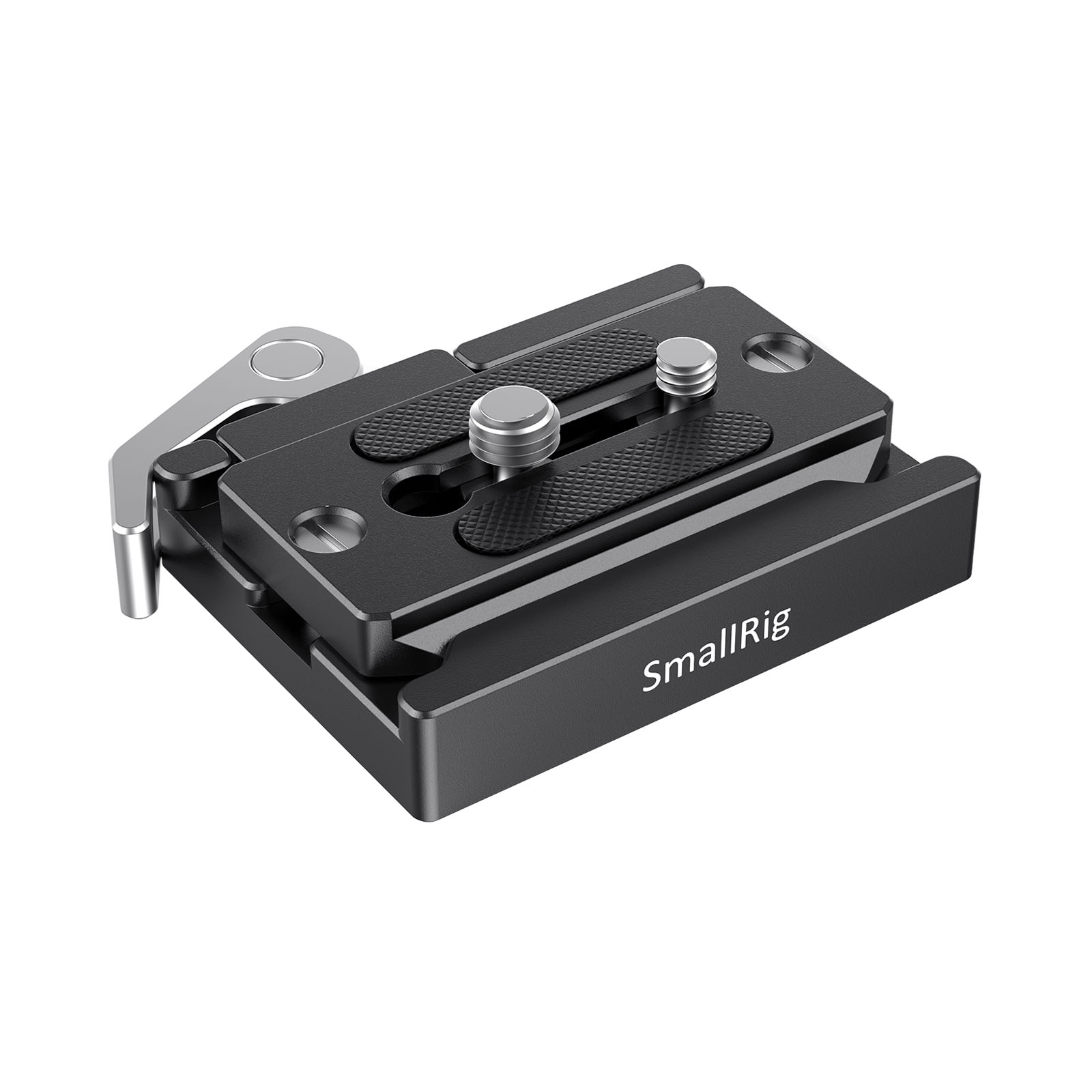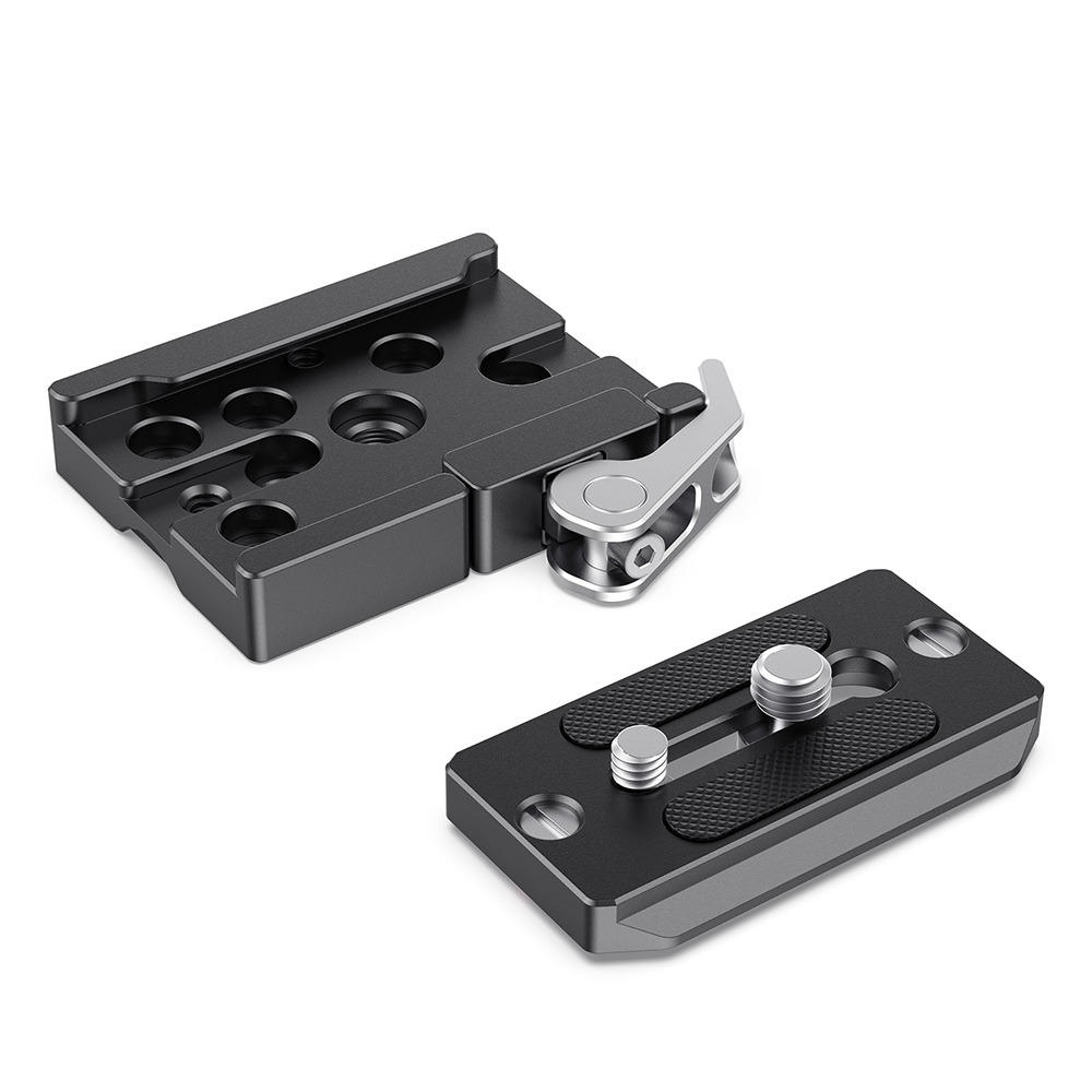 SmallRig Quick Release Clamp and Plate (Arca-type Compatible) 2144 includes an Arca-type clamp and a plate. Tightness of the clamp can be adjusted by stirring the tiny screw on the lever, so it is also cross-compatible with most Arca type plates. The plate is attached to the bottom of cameras or cages by screw(s). The clamp features multiple 1/4’’-20, 3/8’’-16 threaded holes and thorough mounting holes on the bottom, so you can mount it on tripods, jibs and other devices.