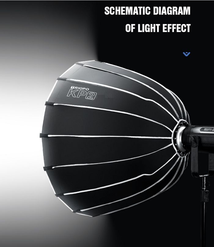 Softbox Triopo Dòng KP2 là Softbox Dạng Parabolic nên nguồn sáng tròn, cho bóng mắt tròn rất phù hợp cho chụp ảnh cận nhân vật.