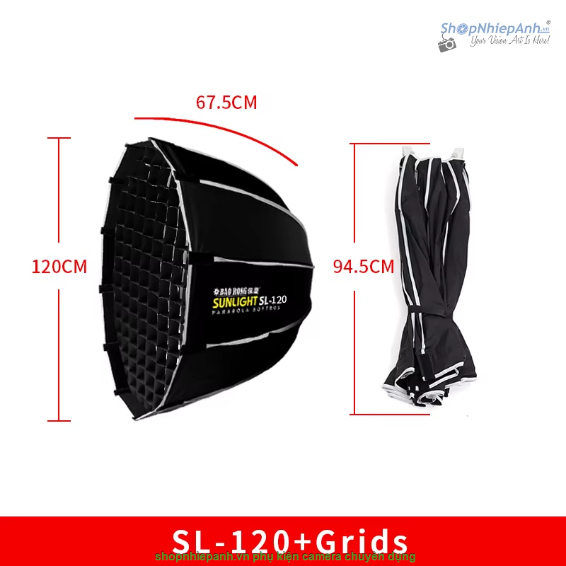 Softbox Triopo SL-120 parabolic có lưới tổ ong grid 120cm thao tác nhanh