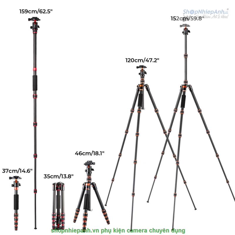 * Dễ điều chỉnh-Di động Điều khiển chân máy 5 đoạn thông qua hệ thống khóa núm kim loại, có thể làm cho chiều cao làm việc của chân máy từ 18 inch/46cm đến 152cm trong vài giây, có thể đáp ứng khoảng 90% nhu cầu về chiều cao chụp ảnh; Với thiết kế phản xạ 180 độ, chân máy chỉ gập lại được 35cm, đáp ứng tốt hơn giới hạn chiều dài hành lý của hãng hàng không (từ 40-55cm), điều này sẽ giải quyết vấn đề mang theo cho bạn ở mức độ lớn nhất và đạt được chuyến du lịch không phải lo lắng.